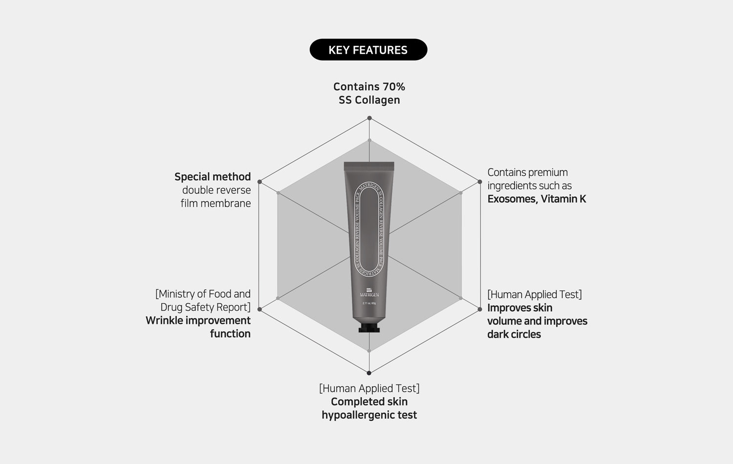 There are a total of 28 types of collagen in our body. Type 1 collagen is the skin collagen that makes up the skin. Matrigen SS Collagen Line is made with only skin collagen, not mixed with other collagen, so you can see the amazing skin improvement effect.